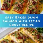 This Baked Dijon Salmon recipe features tender salmon fillets coated with a flavorful blend of melted butter, Dijon mustard, honey, and topped with a crunchy mix of bread crumbs, pecans, and fresh parsley. Baked to perfection, it’s a simple yet elegant dish perfect for a quick weeknight dinner or special occasion.