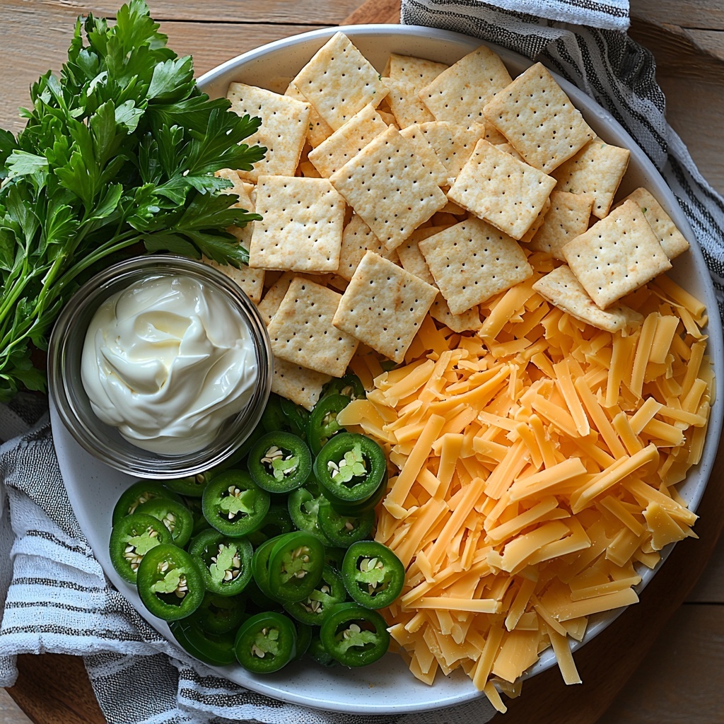 The magic of this dip lies in its simple but thoughtfully chosen ingredients. Each one plays a crucial role: from the fresh jalapeños lending a perfect kick, to the combo of cheeses creating a velvety texture, and the buttery cracker topping adding that irresistible crunch and golden finish.