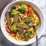 This flavorful Beef Lo Mein recipe combines tender flank steak, fresh vegetables, and perfectly cooked lo mein noodles tossed in a savory, slightly spicy sauce. A quick and satisfying stir-fry dish that’s perfect for a weeknight dinner, packed with vibrant colors and bold Asian-inspired flavors.