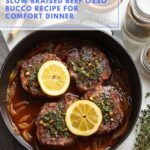 The beef is perfectly cooked when it’s fork-tender and falls off the bone easily. If it still feels tough, it likely needs more time in the oven—low and slow is the key to Osso Bucco perfection.