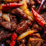 A flavorful Beijing Beef recipe featuring crispy battered flank steak stir-fried with a tangy, sweet, and slightly spicy sauce made from ketchup, hoisin, and soy. This Chinese-American classic is easy to prepare at home and perfect for serving over rice for a satisfying meal.