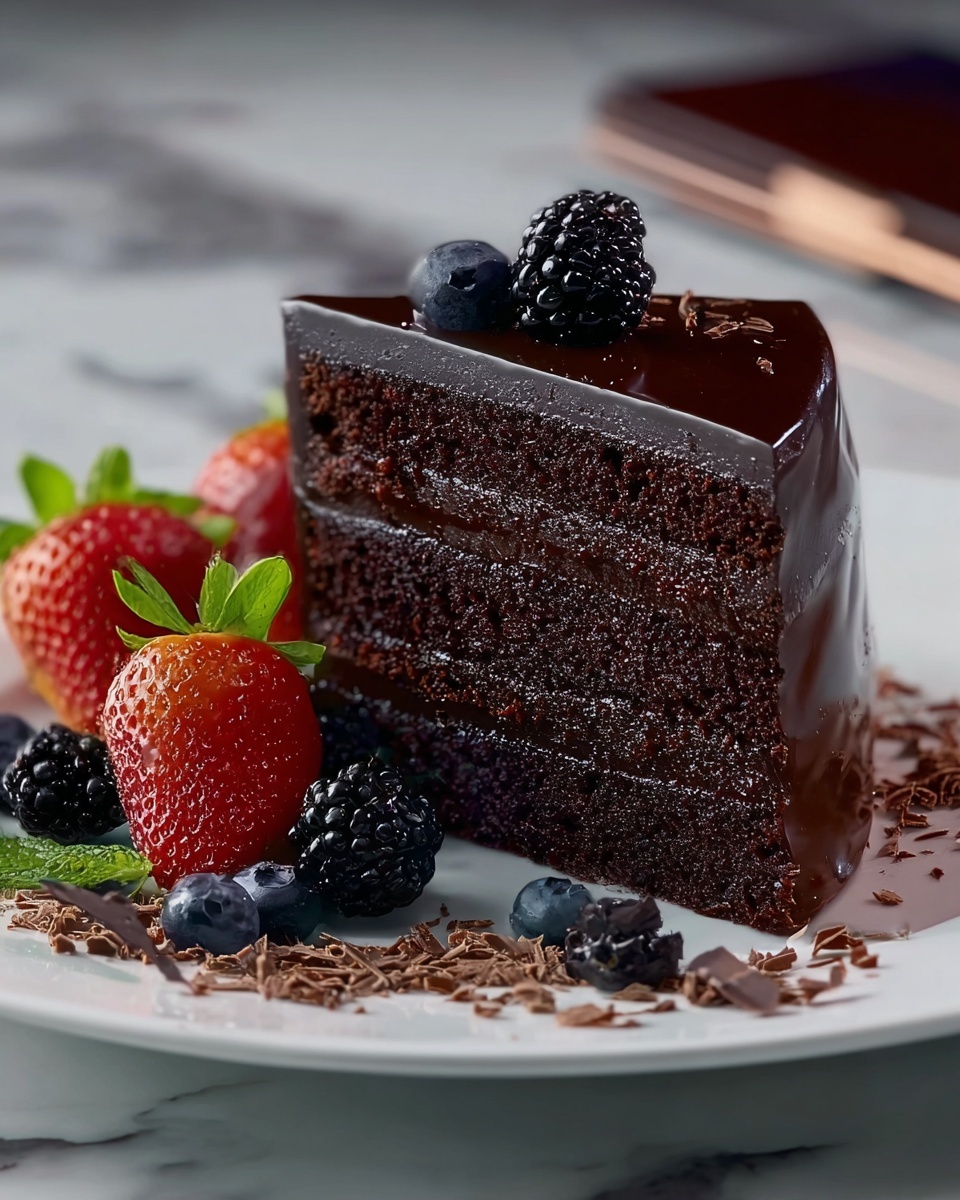 This rich cake pairs beautifully with simple side dishes like a scoop of vanilla bean ice cream or a dollop of fresh whipped cream to balance the intense chocolate and blackberry flavors. A cup of hot coffee or a glass of cold milk also complements the dessert’s rich profile perfectly.