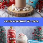 This Boozy Frozen Peppermint Hot Chocolate is a festive and indulgent holiday drink that combines rich hot chocolate mix with creamy vanilla ice cream, refreshing peppermint liqueur, and a cool icy texture. Perfect for celebratory occasions, this cocktail-style frozen treat is topped with whipped cream and crushed peppermint candies for an extra festive touch.