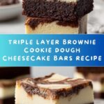 Indulge in these decadent Brownie Bottom Cookie Dough Cheesecake Bars featuring a rich, fudgy brownie base, topped with a creamy cheesecake layer, and finished with dollops of edible cookie dough loaded with mini chocolate chips. These triple-layered bars combine the best of brownies, cheesecake, and cookie dough into one irresistible dessert perfect for any occasion.