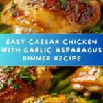 A flavorful Caesar Chicken with Asparagus recipe combining tender, golden-crusted chicken breasts and crisp asparagus spears sautéed with garlic and tossed in creamy Caesar dressing, topped with Parmesan cheese, croutons, and a hint of lemon zest for a bright and balanced meal perfect for a quick and satisfying dinner.