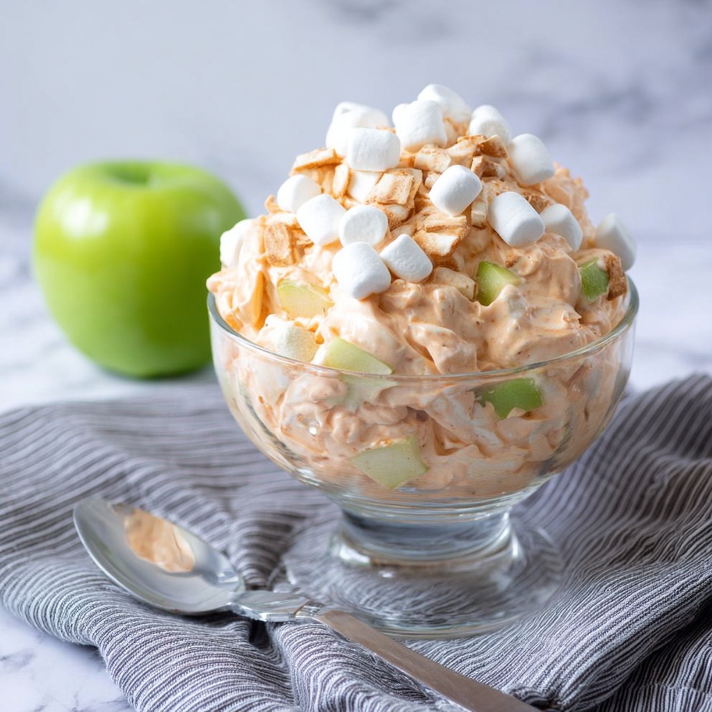 A delightful and easy-to-make Caramel Apple Salad combining the sweet tang of pineapple and butterscotch pudding with the crispness of Granny Smith apples, crunchy peanuts, and fluffy marshmallows, all blended into a creamy whipped topping. Perfect for gatherings and holiday parties with a refreshing, sweet, and nutty flavor profile.
