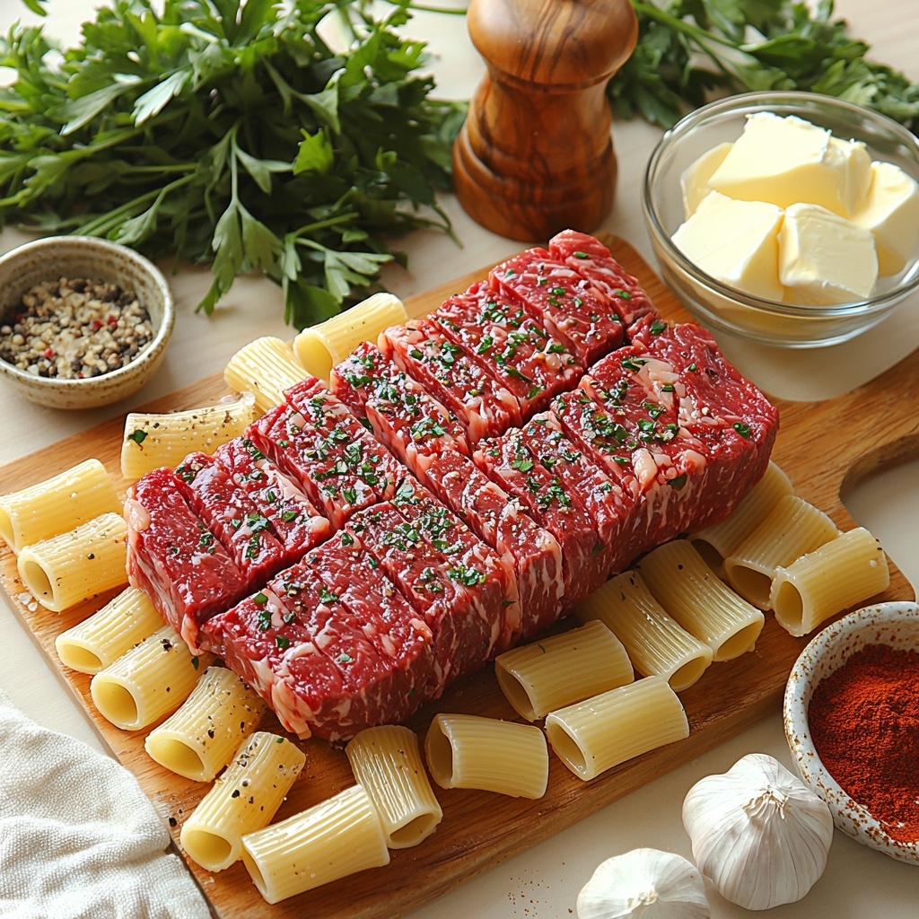 The magic in this Cheesy Cajun Garlic Butter Steak with Creamy Rigatoni Recipe starts with straightforward, quality ingredients. Each one plays a crucial role: from the juicy ribeye that brings robust flavor, to the rich cheeses that create a velvety texture, and the fresh parsley that adds a burst of color and brightness. Here’s what you’ll gather before diving in: