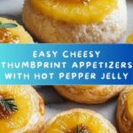 Cheesy Thumbprint Appetizers are delightful bite-sized treats perfect for effortless gatherings. Made with flaky store-bought pastry dough, filled with a savory blend of shredded cheddar cheese and a hint of garlic, and topped with a sweet and spicy hot pepper jelly, these appetizers are quick to prepare and guaranteed to impress your guests with their perfect balance of flavors.