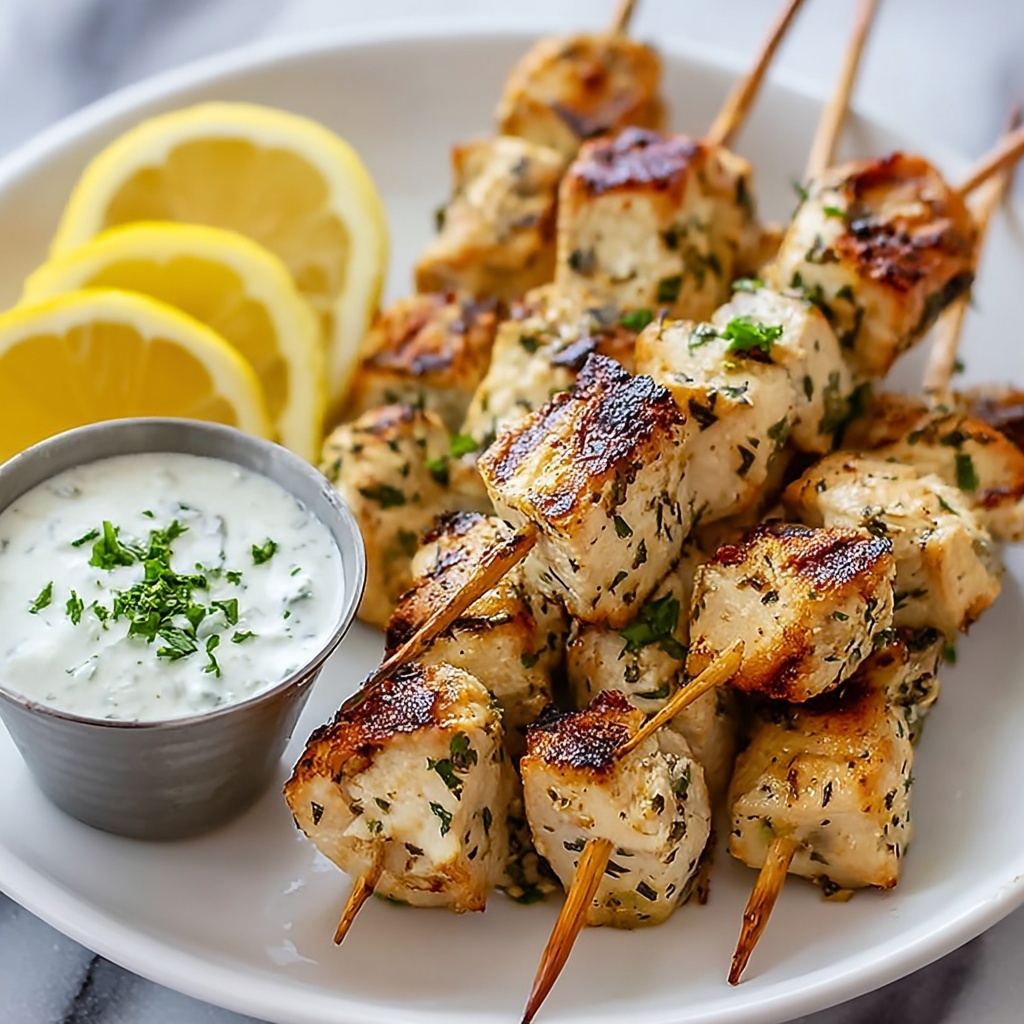 Fresh parsley sprinkled over the cooked skewers adds a crisp, herbal touch that complements the savory grilled chicken beautifully. A drizzle of extra lemon juice or a dollop of creamy tzatziki can also elevate the presentation and flavor.