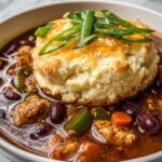 This Chipotle Chicken Chili with Cheddar Bay Biscuit Topping is a hearty and flavorful one-pot meal that combines smoky chipotle peppers, tender shredded chicken, and a medley of vegetables, all simmered together and topped with cheesy, golden-brown biscuits. Perfect for a comforting dinner, this dish balances spicy heat with savory warmth and a satisfying biscuit crust.
