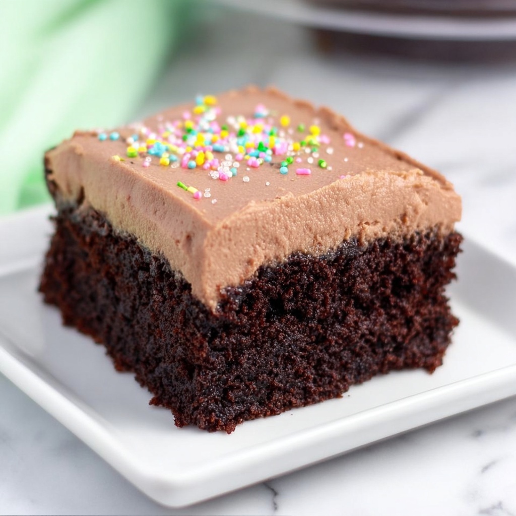 For an extra pop of color and fun, sprinkle some rainbow sprinkles on top. This step is optional but always a hit, especially if you’re serving this for celebrations or just want to feel a little more festive. Now, slice it up, serve, and savor that wonderfully nostalgic chocolatey goodness!