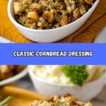 This dressing is already a star, but it shines brightest alongside roasted turkey or baked ham. Complement it with green beans, candied yams, or a crisp salad to round out your meal with different textures and flavors. Each side works to balance the hearty nature of the cornbread dressing.