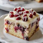 - Prepare Topping and Garnish: Melt the white chocolate chips and drizzle them over the cooled cake. Sprinkle chopped dried cranberries on top. Optionally, whisk the softened cream cheese with a little powdered sugar and milk to create a thin glaze and drizzle over the cake.