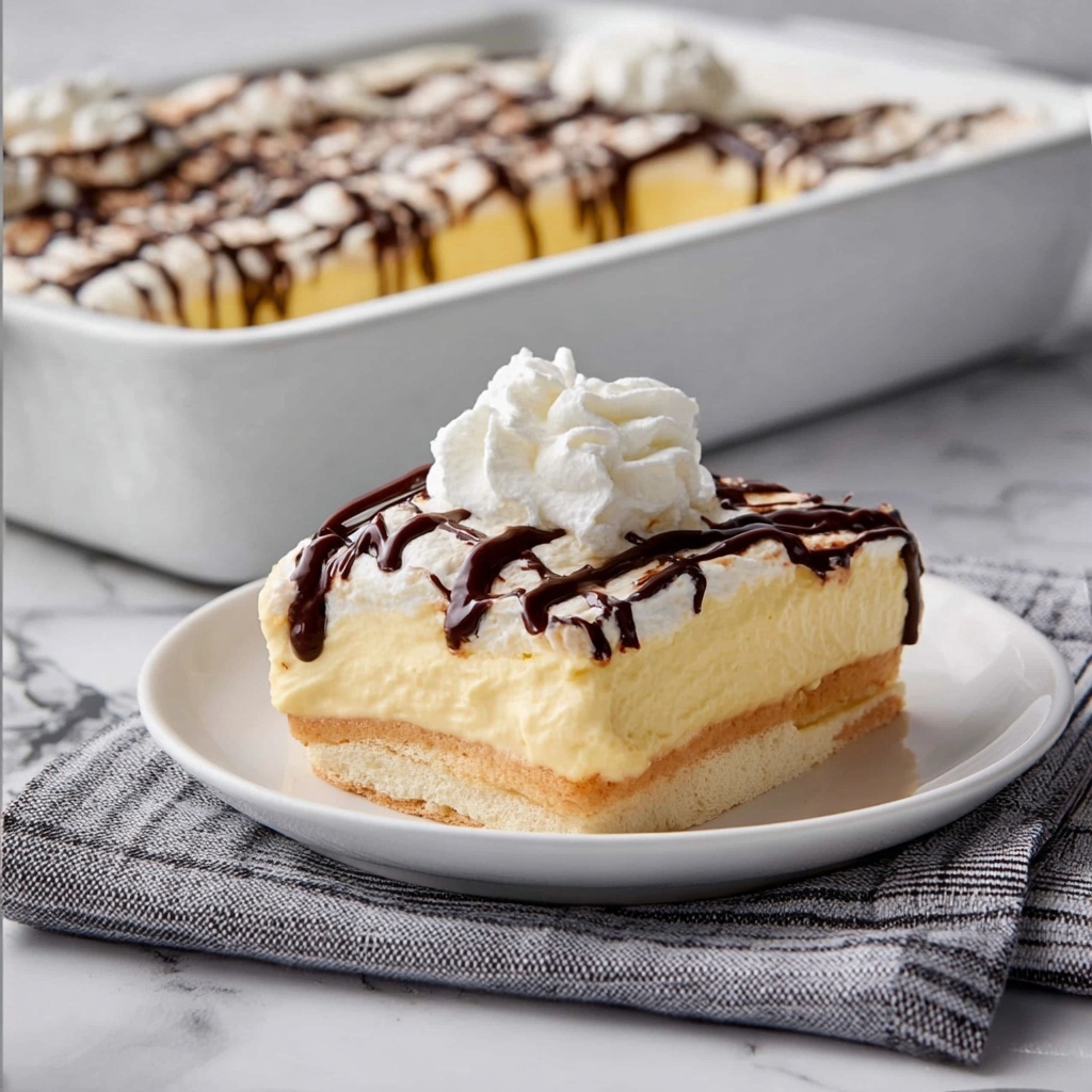For a festive touch, serve individual portions in elegant glass dishes or parfait cups, layering the cake with extra whipped topping and chocolate drizzle. You can also cut the cake into bite-sized squares as charming finger food for parties, making the Cream Puff Cake with Vanilla Pudding and Chocolate Topping Recipe as shareable as it is scrumptious.