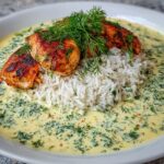 - Serve: Serve the creamy herb chicken and basmati rice hot and enjoy a flavorful and comforting meal.