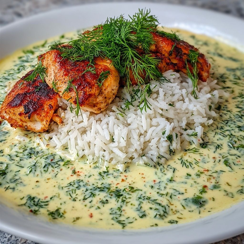 Creamy Herb Chicken & Basmati Rice is a comforting and flavorful dish featuring tender chicken breasts seasoned with aromatic herbs and spices, cooked to perfection in a skillet. The chicken is served over perfectly cooked basmati rice infused with chicken broth and topped with a luscious creamy parmesan sauce, finished with a fresh blend of parsley, dill, and chives for an herby finish. This recipe is ideal for a hearty yet elegant dinner that blends creamy textures with vibrant flavors.