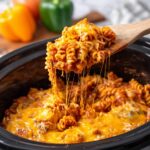 - Cook and add cheese: Set the crockpot to high and cook for 1 hour. After this time, stir in 1/2 cup of shredded cheese, then sprinkle the remaining cheese on top. Continue cooking for an additional 30 minutes until the pasta is tender and the cheese has melted into a creamy topping.