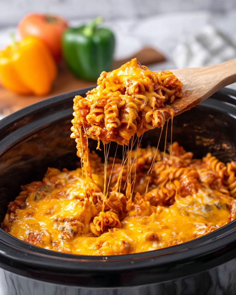This Crockpot Sloppy Joe Casserole is a hearty and comforting dish that combines the classic flavors of sloppy joes with cheesy pasta, all cooked conveniently in a slow cooker. Perfect for busy weeknights, it features ground beef simmered with onions and bell peppers, mixed with sloppy joe sauce and cheddar cheese soup, then layered with pasta and shredded cheese for a creamy, savory casserole.