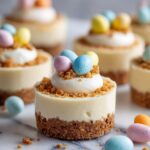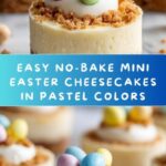 - Garnish and serve: Before serving, top each mini cheesecake with mini chocolate eggs or Easter candies and add a dollop of whipped cream if desired.