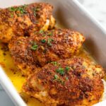 5. Rest: Remove the chicken from the oven and let it rest for 5 minutes. This allows juices to redistribute and raises the internal temperature to the safe 165°F. Slice or serve whole, optionally spooning pan juices on top for extra flavor.
