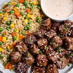 - Serve: Plate the hibachi steak slices alongside the golden fried rice and drizzle or serve with the spicy mayo sauce for a complete hibachi-style meal.