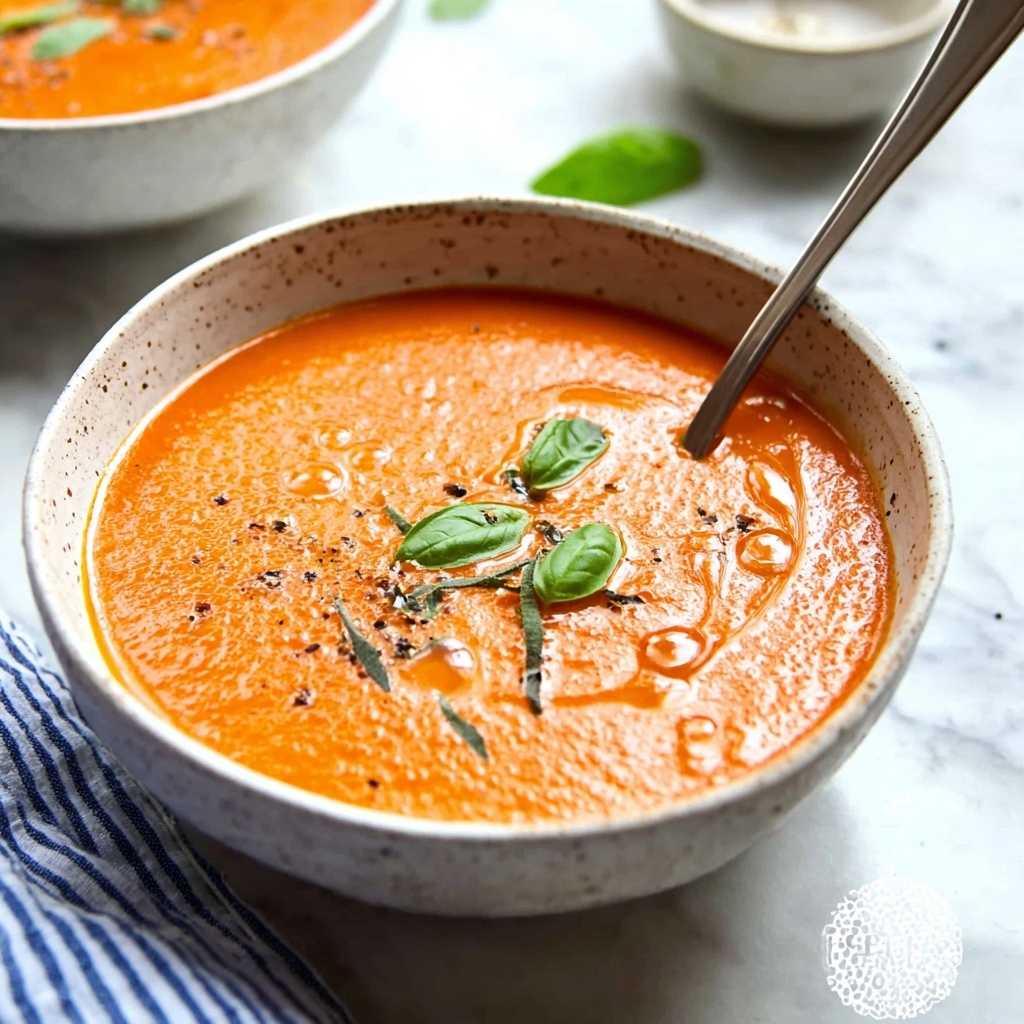 Garnishing is your chance to add pops of color and texture. Fresh basil leaves work beautifully here, lending a fragrant, herbal brightness that cuts through the richness. A drizzle of cream or a sprinkle of freshly cracked black pepper also makes your soup look inviting and adds subtle layers of flavor.