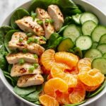 This Easy Mandarin Chicken Salad combines tender grilled chicken breast with juicy mandarin oranges and crisp mixed greens for a refreshing, flavorful meal. Tossed in a light honey-soy dressing and garnished with sesame seeds, this vibrant salad is perfect for a quick lunch or a healthy dinner option.