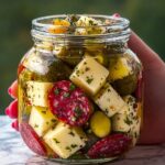 Make your Easy Marinated Cheese Appetizer with Salami & Pickles Recipe party-ready by skewering individual pieces on toothpicks or small decorative skewers. Serve them on a vibrant platter with colorful garnishes like cherry tomatoes or fresh basil leaves. Another fun idea is to layer the ingredients in clear glass jars for an eye-catching, portable snack option.