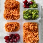 Complement the Easy Spaghetti Lunchbox Idea with Broccoli and Grapes Recipe by adding a crunchy side, like carrot sticks or snap peas. These fresh veggies keep the meal balanced and add more texture, making lunchtime exciting and nutritious.