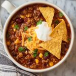 This Easy Taco Soup recipe is a hearty and flavorful skillet-cooked dish combining ground beef, beans, corn, tomatoes, and classic taco seasonings. Perfectly spiced and loaded with toppings like avocado and cilantro, it’s a quick and satisfying meal for 4 people.