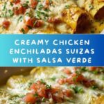 Enchiladas Suizas are a classic Mexican dish featuring tender corn tortillas filled with shredded chicken and creamy Monterey Jack cheese, all smothered in a rich, tangy salsa verde sauce blended with sour cream. Baked until bubbly and golden, they’re garnished with fresh cilantro and jalapeños for a perfect balance of flavors and spice.