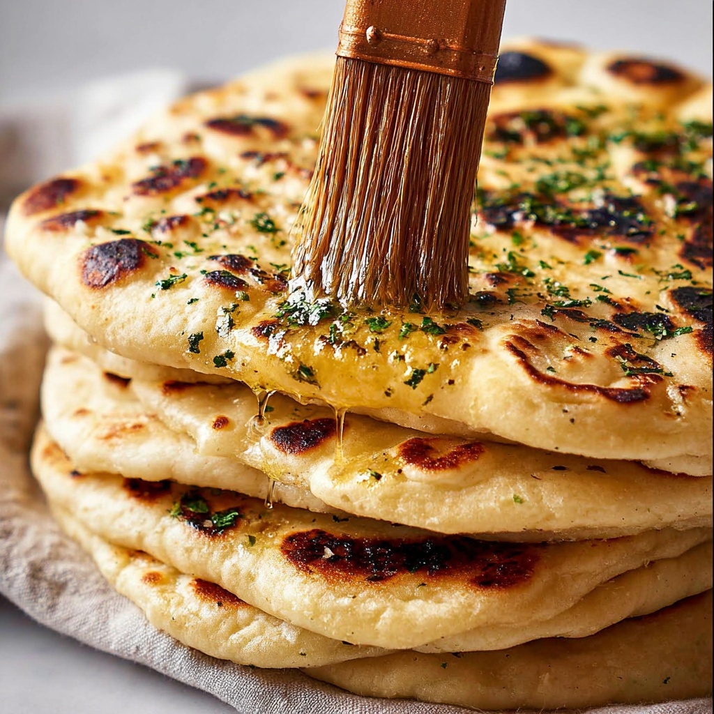 Brush each hot naan with melted butter or ghee immediately after cooking, or make a quick garlic butter by blending melted butter with crushed garlic for an extra kick. Finally, sprinkle on nigella seeds and chopped coriander for that traditional look and fresh flavor boost.
