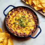 Finally, scatter the diced green onions across the dip before serving. These add a fresh, vibrant pop of color and a gentle onion bite that perfectly balances the rich, cheesy base. Serve warm with your favorite Frito’s Scoops or tortilla chips for that perfect crunchy scoop.