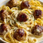 This Garlic Butter Meatballs & Parmesan Linguine Dream is a comforting Italian-American main course combining juicy, flavorful meatballs with creamy garlic butter linguine. Perfect for a satisfying weeknight dinner, the meatballs are seasoned with Parmesan and Italian herbs, then pan-fried to golden perfection. Tossed with linguine in a silky Parmesan garlic butter sauce, this dish is garnished with fresh parsley for a bright finish.