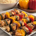Juicy and flavorful Garlic Herb Chicken Kabobs featuring marinated chicken breast and fresh vegetables grilled to perfection. This easy recipe combines aromatic herbs, garlic, and lemon juice for a delicious and colorful dish perfect for a quick weeknight dinner or weekend barbecue.