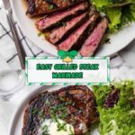 - Grill the Steaks: Place the marinated steaks on the hot grill. Cook each side for about 6 minutes or until grill marks develop and the internal temperature reaches 130-140°F for medium-rare to medium doneness.
