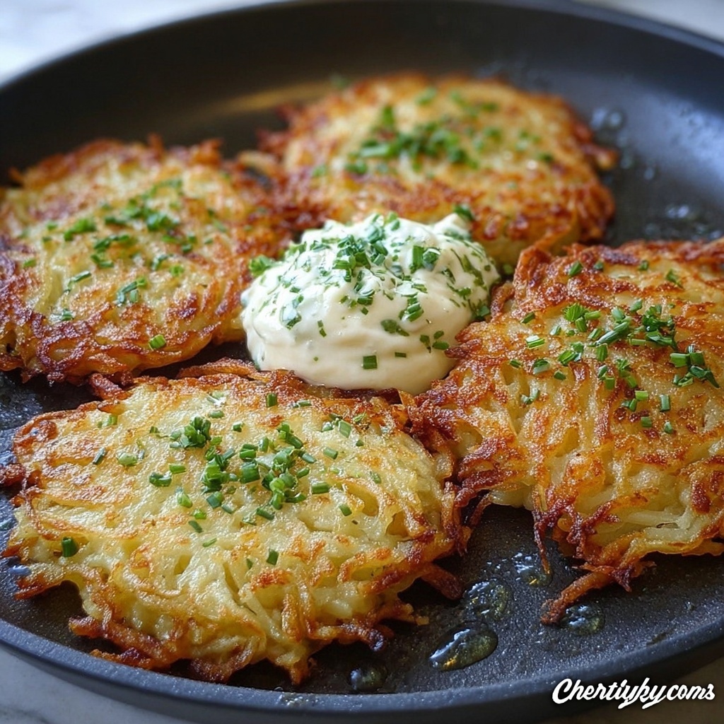 Adding garnishes can elevate your German Potato Pancakes Recipe with bursts of color and complementary flavors. Traditional options like a dollop of sour cream or applesauce bring a cool, creamy contrast to the crispy pancakes. Fresh herbs like chopped chives or parsley give a fresh pop of green and a slight herbal zing that brightens each bite.