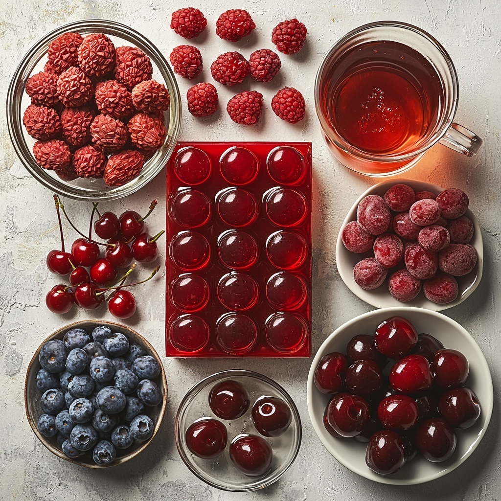 Start by draining the canned lychee fruits carefully. Inside each lychee, insert one blueberry or maraschino cherry to create that perfect eyeball effect. The white, fleshy lychee acts as the eyeball’s sclera, and the darker berry or cherry forms the creepy pupil. Set these aside while you prepare the jello mixture.