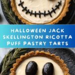 These Halloween Jack Skellington Ricotta Olive Tarts are a delightful and spooky appetizer perfect for your Halloween party. Featuring flaky puff pastry filled with a creamy ricotta and Parmesan mixture, and decorated with black olives to create Jack Skellington’s iconic face, these tarts are both visually festive and deliciously savory.