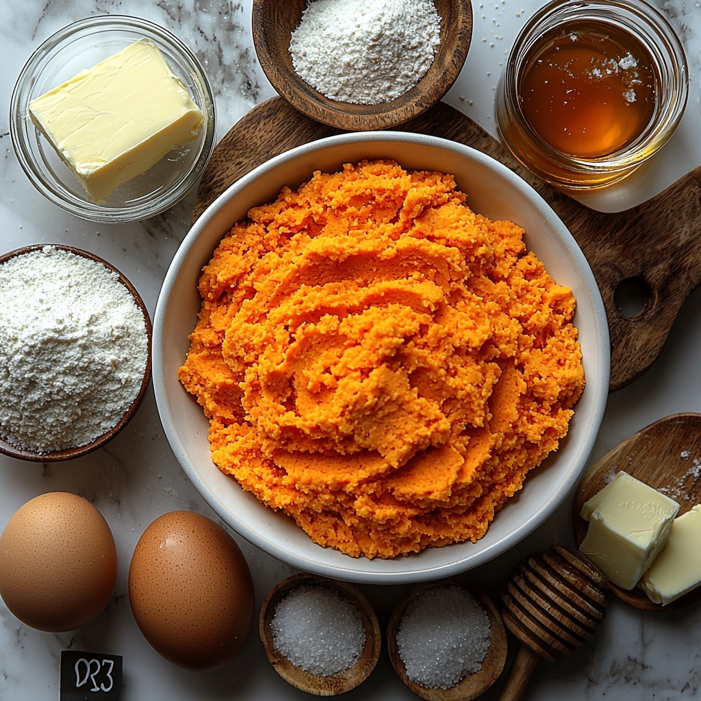 - Combine Wet Ingredients: In a separate bowl, mix the mashed sweet potatoes with buttermilk, melted butter, eggs, and honey. Stir until thoroughly combined and smooth.