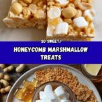 Delightfully sweet and crunchy Honeycomb Marshmallow Treats combining honey-flavored cereal, mini marshmallows, roasted salted peanuts, and a touch of butter and honey for a delicious no-bake snack perfect for sharing or on-the-go treats.