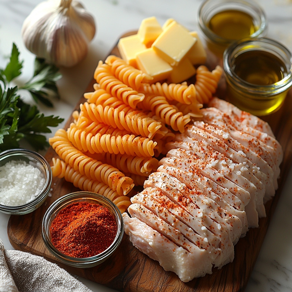 The magic behind this Indulgent Cheesy Rotini with Garlic Parmesan Chicken Recipe really comes down to a handful of straightforward yet impactful ingredients. Each one plays a vital role in crafting the depth of flavor, creamy texture, and that vibrant finish you see on the plate.