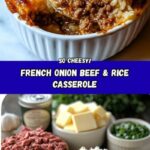 This Irresistibly Cheesy French Onion Ground Beef and Rice Casserole Recipe is a comforting, crowd-pleasing dish that brings together the rich flavors of caramelized onion soup, hearty ground beef, fluffy rice, and a generous blanket of gooey mozzarella cheese. It’s the perfect weeknight dinner that feels like a warm hug in a casserole dish—simple enough for busy days but impressive enough for family gatherings. Once you try it, this cheesy casserole might just become your go-to recipe whenever you want to satisfy that craving for something savory, creamy, and utterly delicious.