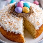This Easter Cake recipe features a moist and flavorful Bundt cake infused with lemon zest and coconut, topped with creamy lemon-vanilla cream cheese frosting, shredded coconut, and festive candy-coated chocolate eggs. Perfect for holiday celebrations, it combines a tender crumb with bright citrus notes and a rich, smooth frosting.
