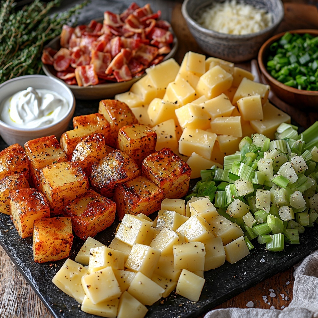 This recipe shines because of its simple, honest ingredients that each play a key role in building warmth, texture, and flavor in the soup. From the crispy bacon that adds crunch and smoky depth to the fresh celery and onion that offer subtle aromatic sweetness, every component blends beautifully to create that perfect loaded potato soup experience.