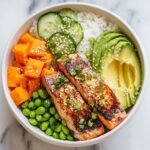 Gathering the right ingredients is the foundation for this Loaded Salmon Rice Bowls Recipe. Each component, while simple, brings its own unique contribution to the final dish—from the tender salmon providing rich protein, to the fresh vegetables adding crunch and brightness, and the rice acting as the hearty base that ties it all together.