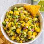 Store any leftover mango salsa in an airtight container in the refrigerator to maintain its freshness. It’s best enjoyed within 1 to 2 days before the avocado begins to brown and the flavors start to mellow.