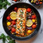 Mediterranean-Style Baked Salmon with Cherry Tomatoes, Olives, and Feta Recipe