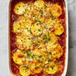 - Bake: Place the baking dish on a rimmed baking sheet to catch drips and bake in the preheated oven for 30 to 35 minutes, or until the cheese is melted, bubbling, and the filling is hot throughout.
