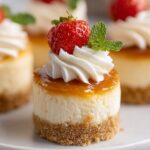 Garnishing your mini cheesecakes is where the fun really begins! Pile on a colorful assortment of fresh fruits like sliced strawberries, blueberries, or kiwi for a natural burst of sweetness and a pop of vibrant color. Add clouds of freshly whipped cream for that light contrast, and if you crave a touch of decadence, drizzle warm chocolate ganache on top. These garnishes transform each bite into a deliciously balanced experience that looks just as good as it tastes.
